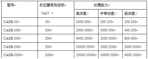 UASB反應器規格參數表